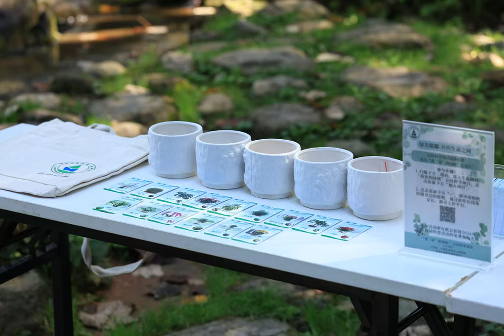 活動當(dāng)天,廬山植物園小南門前人潮涌動。工作人員精心準(zhǔn)備了植物手卡、研學(xué)帆布包以及內(nèi)附常見花卉種子的小花盆,作為參與鼓勵獎品,現(xiàn)場氣氛熱烈,廣大游客踴躍加入。