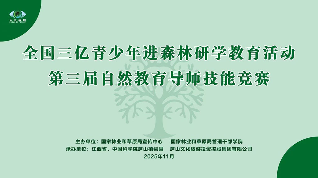 2025年11月5日,由國家林業(yè)和草原局宣傳中心和國家林業(yè)和草原局管理干部學(xué)院主辦,江西省、中國科學(xué)院廬山植物園和廬山文化旅游投資控股集團有限公司承辦的全國三億青少年進森林研學(xué)教育活動第三屆自然教育導(dǎo)師技能競賽在廬山植物園圓滿落幕。來自全國各自然保護區(qū)或自然教育相關(guān)單位的43位參賽選手,聚焦自然教育這一主題,從“自然教育項目策劃”和“自然教育現(xiàn)場教學(xué)”兩個部分展開激烈比拼。