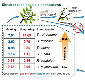 我園恢復(fù)生態(tài)學(xué)研究組在祁連山高寒草甸生態(tài)系統(tǒng)灌木擴(kuò)張研究方面取得新進(jìn)展